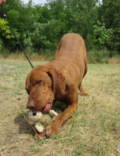 FótiVitéz ist ein beeindruckender, großer und stattlicher 5-jähriger Vizsla-Rüde, der aus einer Familie stammt, in der ihm leider klare Grenzen und konsequente Führung gefehlt haben. In seinem früheren Zuhause hatte er begonnen, den Haushalt zu kontrollieren und zeigte dabei auch problematisches Verhalten – es kam leider zu einem Beißvorfall. Eine wirkliche Erziehung oder sinnvolle Auslastung hatte zuvor kaum stattgefunden.