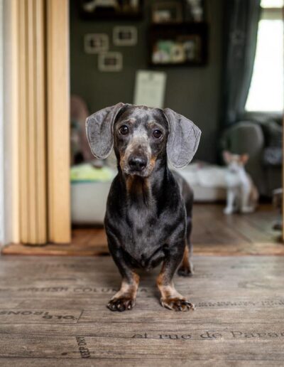 Wir sind sicher, dass dann auch Grafit ganz schnell ein typischer, verspielter und sturer Dackel wird.Grafit hat, wie Galina auch, das Dilute Gen (CDA). Er hat nahezu keinerlei Fell. Seine Haut ist aber gesund. Er benötigt aber dennoch im Sommer Schutz vor der Sonne und im Winter vor der Kälte.
