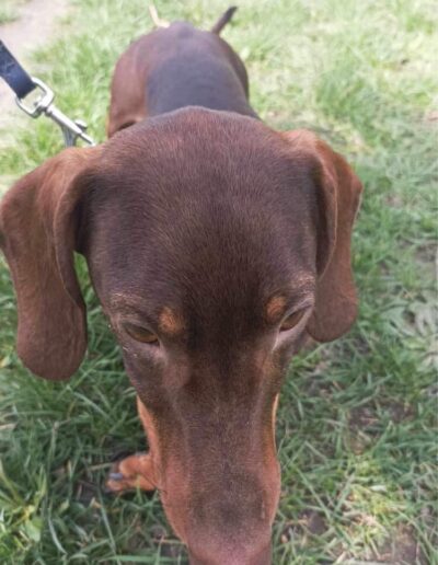 Der kleine Dackelmann Hoppa- nun liebevoll Otto genannt- ist bereits seit dem 17.03.2024 auf seiner Pflegestelle in 23896 Panten. Er hat sich mit den zwei dort lebenden Hunden (Dackel & Magyar Vizsla) sehr gut angefreundet. Hier zeigt sich, dass ein kleiner Zweithund im neuen Zuhause vom Vorteil wäre. Otto liebt es mit anderen kleinen Hunden zu spielen und zu kuscheln. Das Training in der Hundeschule und im Garten funktioniert bereits ganz gut. Da er einen ausgeprägten Jagdinstinkt hat, ist er bei den Spaziergängen derzeit noch nicht abrufbar. Dies muss im neuen Zuhause noch weiter geübt werden. Auch das Laufen an der Leine muss noch weiter ausgebaut werden. Otto kann derzeit mit den anderen beiden Hunden bis zu 2 ½ Stunden allein bleiben. Im Auto fährt er souverän mit und kennt auch eine Hundebox. Er sucht den Körperkontakt und liebt es, mit seinen Pflegeeltern zu kuscheln. Kleinere Kinder, sowie Katzen und jüngere, agile, große Hunde sollten im neuen Zuhause nicht vorhanden sein. Zudem sehen wir Otto im ländlichen Bereich mit Garten, den er erkunden kann und wo er die Sonne genießen darf. Aufgrund seiner Beeinträchtigung muss sich der Alltag ein wenig nach Otto richten. Es gibt gute Tage, wo Otto sehr agil ist und auch größere Runden gehen kann und dann gibt es auch mal Tage, wo er eher weniger laufen mag/ kann. Derzeit wird mit Hilfe eines Orthopäden nach einer Lösung für Ottos Beinchen gesucht. Um Otto auch geistig zu beschäftigen, hat sein Pflegefrauchen mit ihm das Mantrailing angefangen. Hier darf er nur kurze Strecken laufen und man sieht richtig, wie viel Freude ihm die Suche bereitet. Dieser kleine junge Dackelmann ist ein Rohdiamant und sucht sein perfektes Zuhause, wo er einfach so sein darf, wie er ist.