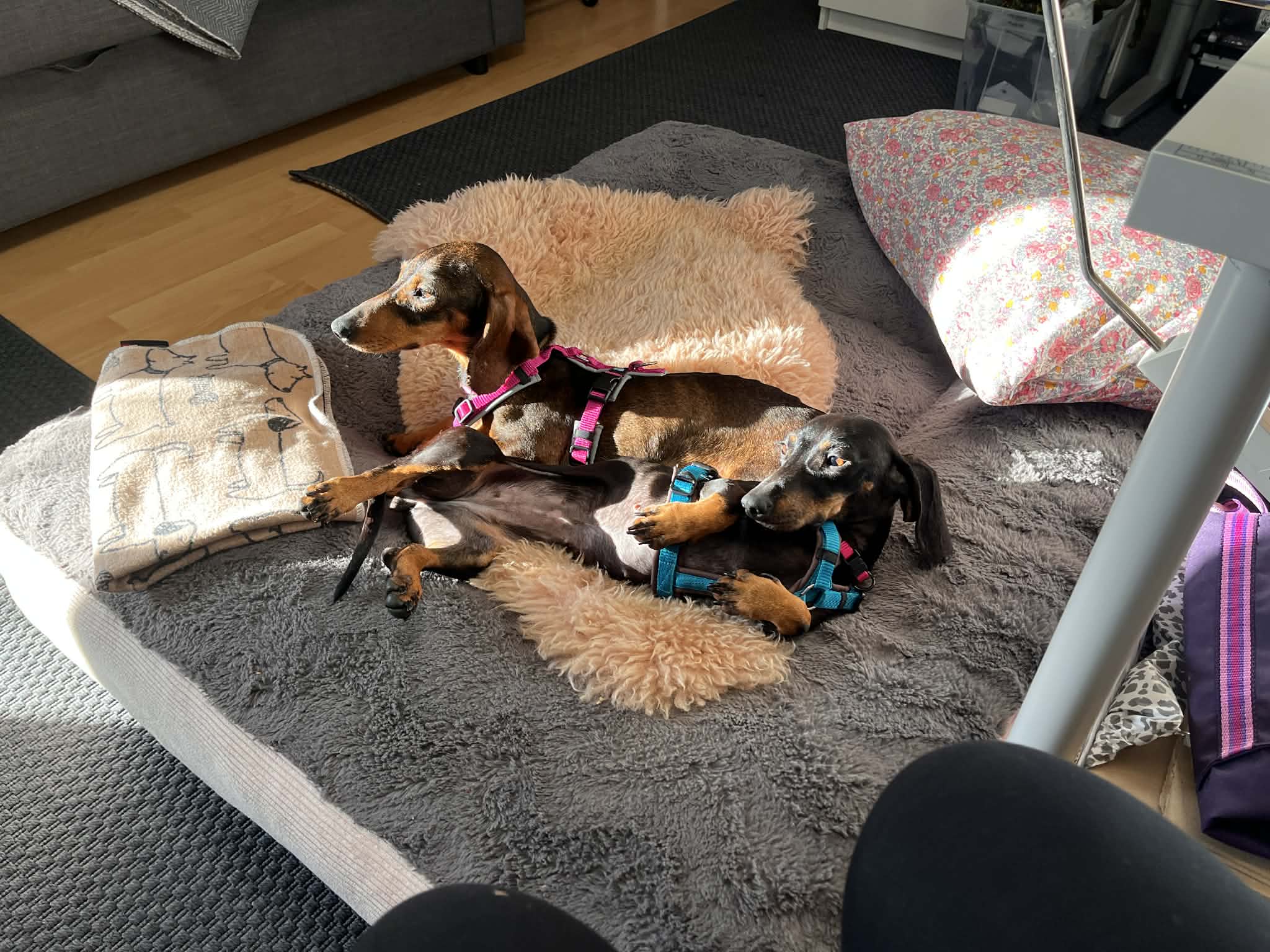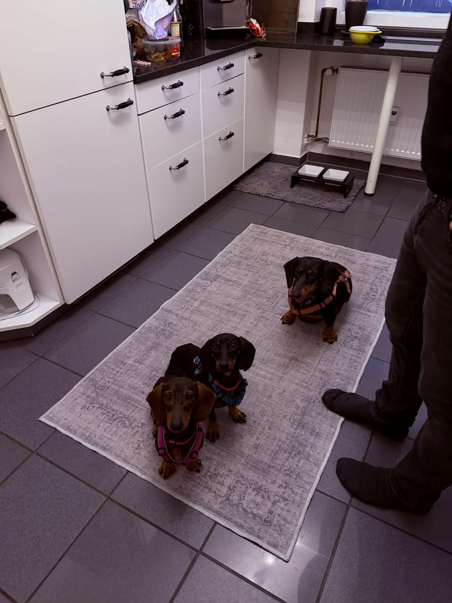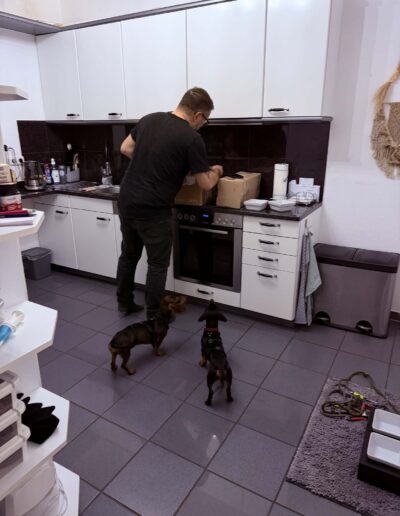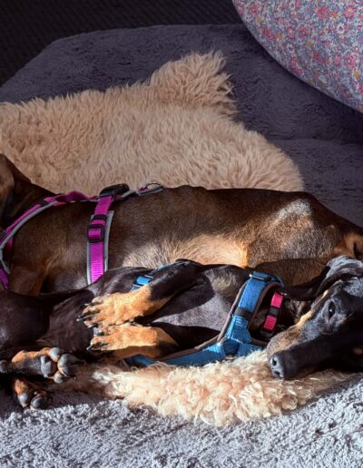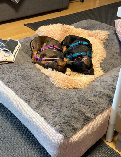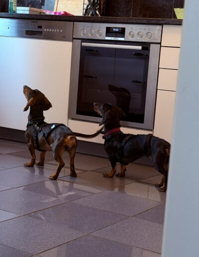 Da beide waschechte Dackel sind, sollte man auch mit ihnen eine Hundeschule ins Auge fassen. Der Sturkopf ist ja immer eine Gratiszugabe bei Dackeln.