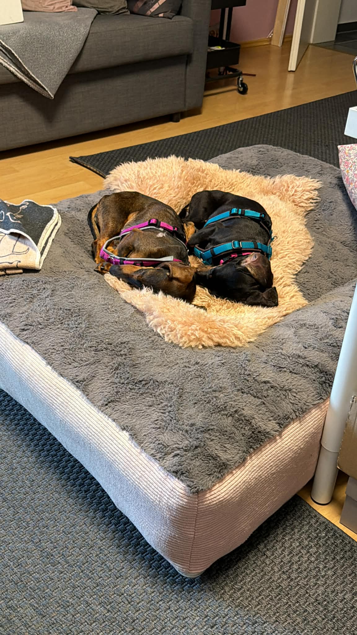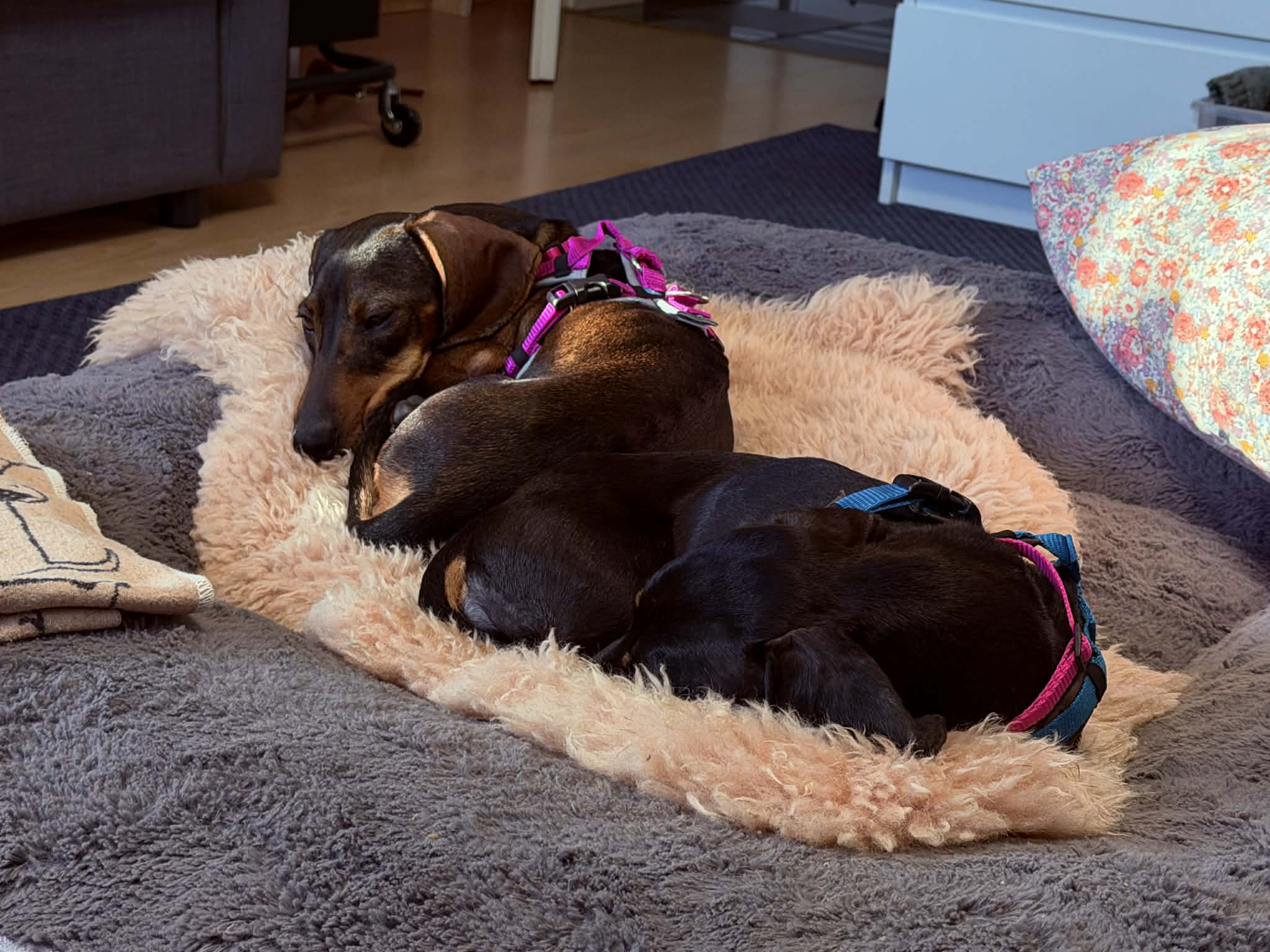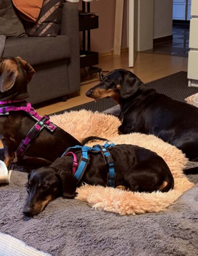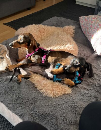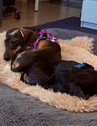Lapka (saufarben) und Must (black-tan) sind zwei ganz besondere kleine Dackelseelen. Sie wurden zusammen auf dem Land gefunden und zu Futrinka gebracht. Da sie seither auch im großen Rudel unzertrennlich sind, möchten wir sie auch nur zusammen in eine neue Familie geben.