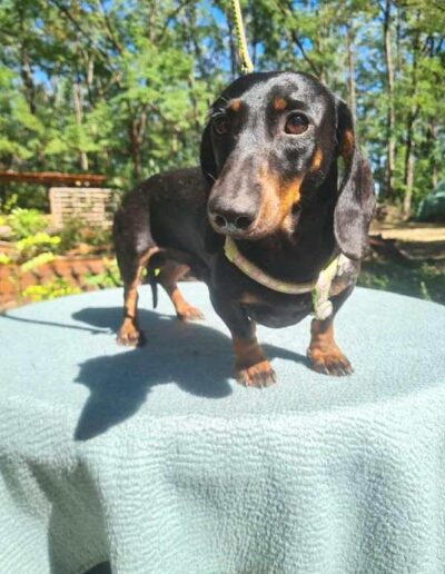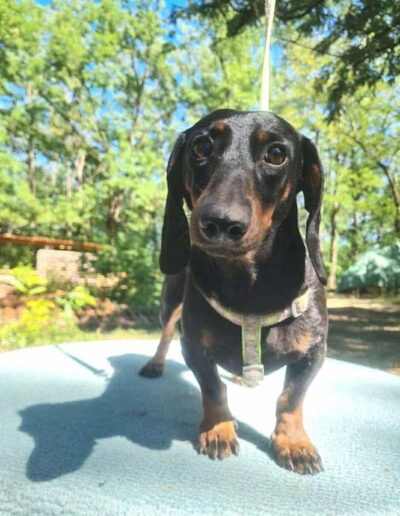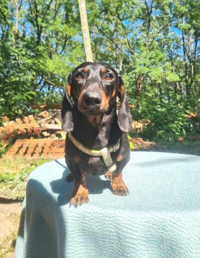 Er ist fast stubenrein und geht gut an der Leine. Auch im Auto ist er ein angenehmer Begleiter und kennt Autofahrten in der Transportbox.