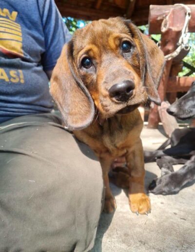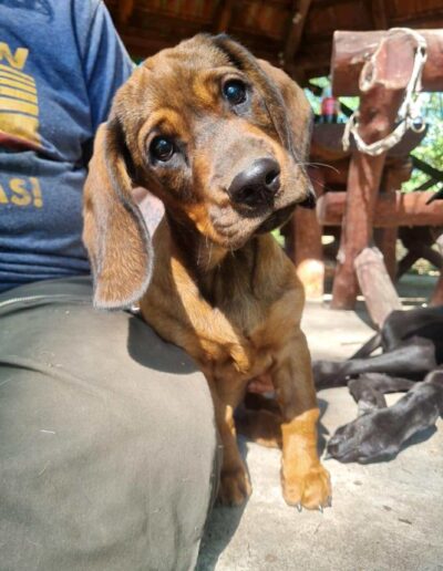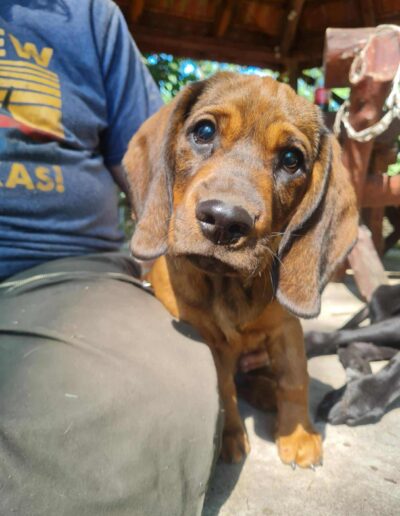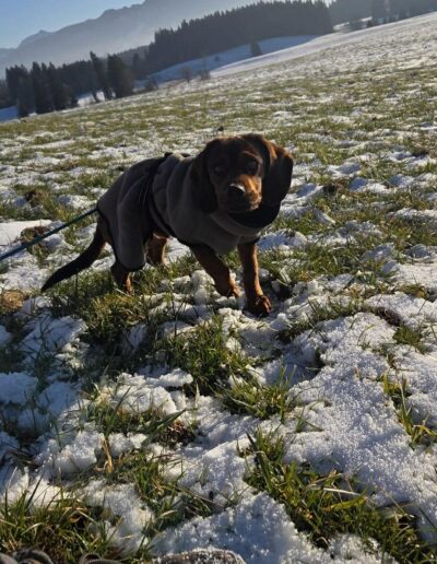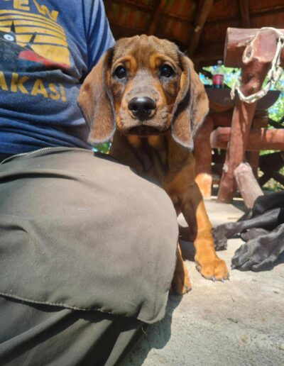 Wir suchen für Szürike Menschen, die sich nicht nur von seinem hübschen Aussehen oder Mitleid leiten lassen, sondern sich darüber bewusst sind, dass Hunde mit Handicap eine besondere Fürsorge benötigen. Außerdem ist Szürike als Alpenländische Dachsbracke ein Hund, der arbeiten möchte und eine sinnvolle jagdliche Beschäftigung benötigt. Aus dem Grund wünschen wir uns eine Familie, die seine Leidenschaft für die Fährtensuche fördert und ihn dahingehend beschäftigt.